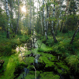 Fantastische Moorlandschaft mit Birkenwäldern und schaurig-schönen Sumpfstellen